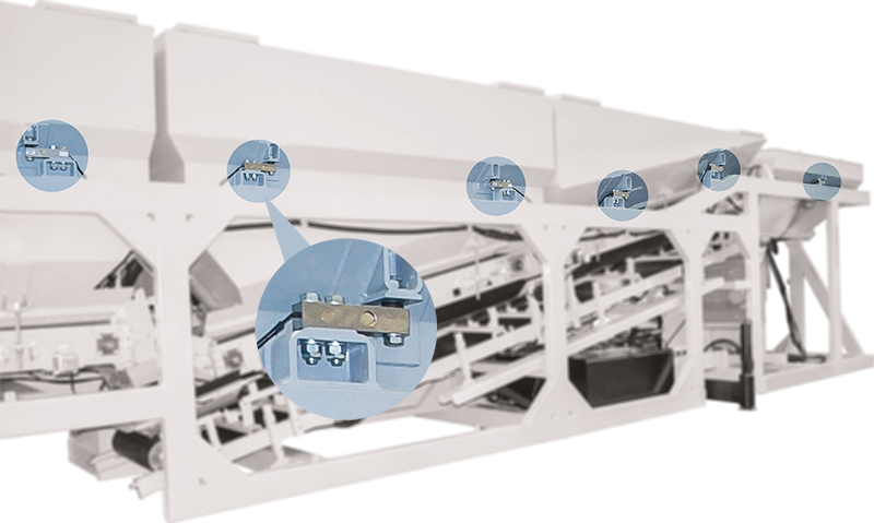 Aggregates and cement are dosed by weight, with precise and consistent measurements throughout the entire production cycle. The three aggregate hoppers are installed on OIML C3 certified load cells (four per hopper), which weigh the extracted amount by weight loss. The cement silo is also mounted on three load cells using the same principle.